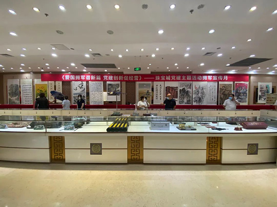 8月1日,为热烈庆祝建军95周年,切实增强珠宝城全体员工国防教育责任意识。北京双拥艺术中心和北京子凡文化交流中心携手珠宝城党支部利用一层卖场东侧区域开展主题为《爱国拥军谱新篇 党建创新促经营》党建主题活动拥军宣传月。