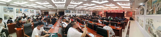 文脉兴则国运兴,文化强则民族强。中华酒文化自古以来就有着博大精深的历史和文化底蕴,其与中国书画艺术相互交融,形成了独特的艺术风格和文化内涵。杨百亮先生,国家一级美术师、中国书画院副院长、文旅部中国传统文化促进会理事,在书画创作领域颇有建树。他为传承和弘扬中华酒文化,在阅史籍、查资料、访专家、定题材、谋布局,积数年之力,把酒的古老传说、历史典故和精彩片段集结成篇,用书画艺术的形式诠释中国酒文化和酒故事,演绎中国酒的宏大篇章。本次展览共展出其《酒泉》、《曲水流觞》、《义结桃园》、《千叟宴》、《鸿门宴》、《杯酒释兵权》、《温酒斩华雄》、《青梅煮酒论英雄》、《李白春夜宴桃梨园》、《盛唐长安酒会》、《牧童遥指杏花村》等百余幅酒文化书画作品,充分彰显了中华优秀酒文化内涵及底蕴,真可谓大手笔。