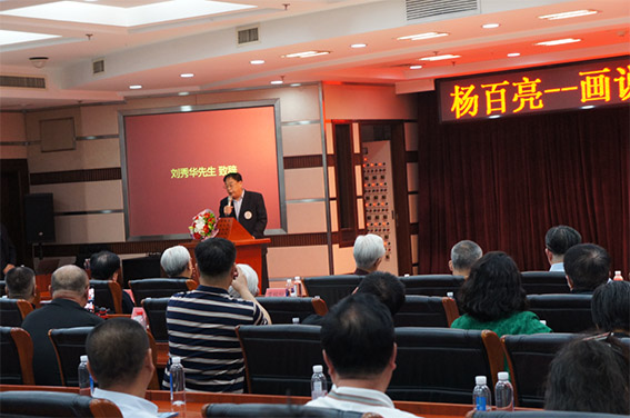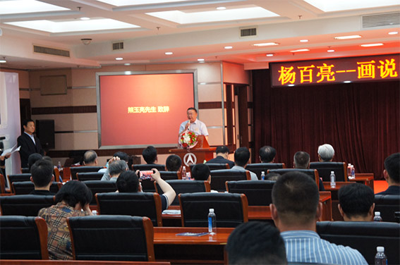 大会首先由北京艺术博览会基金会书记、首都食品安全联盟名酒体验中心主任、中国酒业协会原副理事长刘秀华先生致辞,之后苗培红先生、陈培伦先生、李继林先生、熊玉亮先生、吉林省白山市承天顺酒业有限公司副总经理李继林先生、熊玉亮先生等纷纷发表讲话,大家无不对杨百亮先生的酒文化主题作品赞叹不已,称赞他的每幅作品都别有一番意境与思想,不仅仅是让人了解到中华酒文化的美妙之处,更是展示出了中国的传统文化之美,进而推动更多的人学习中华民族的文化底蕴,为人类文明进步做出贡献。