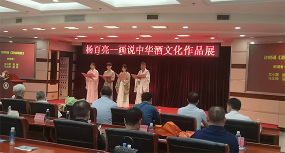 2023年5月20日,由北京艺术博览会基金会、首都食品安全联盟名酒体验中心主办,北京子凡文化交流中心承办的著名画家杨百亮——中华酒文化作品展在北京航天标准大厦隆重举行。展览现场氛围热烈,座无虚席,出席本次作品展的有原总装副政委、军纪委副书记李栋恒中将,原国防科大政治部副主任徐子怀少将,中国职工书法家协会理事苗京平等领导、嘉宾、书画艺术界同仁以及媒体等社会各界朋友达200余人。这一活动正是新时期坚持文化自信,传承中华优秀传统文化,学习贯彻国家文化政策的艺术实践。展览由张克宗先生、张雯雯女士共同主持。